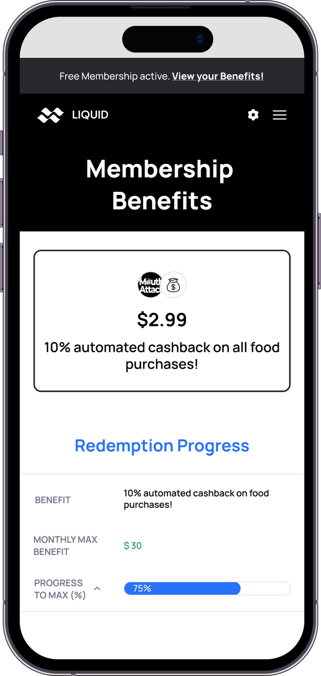 10% automated cashback on all food purchases with any debit or credit card you connect!